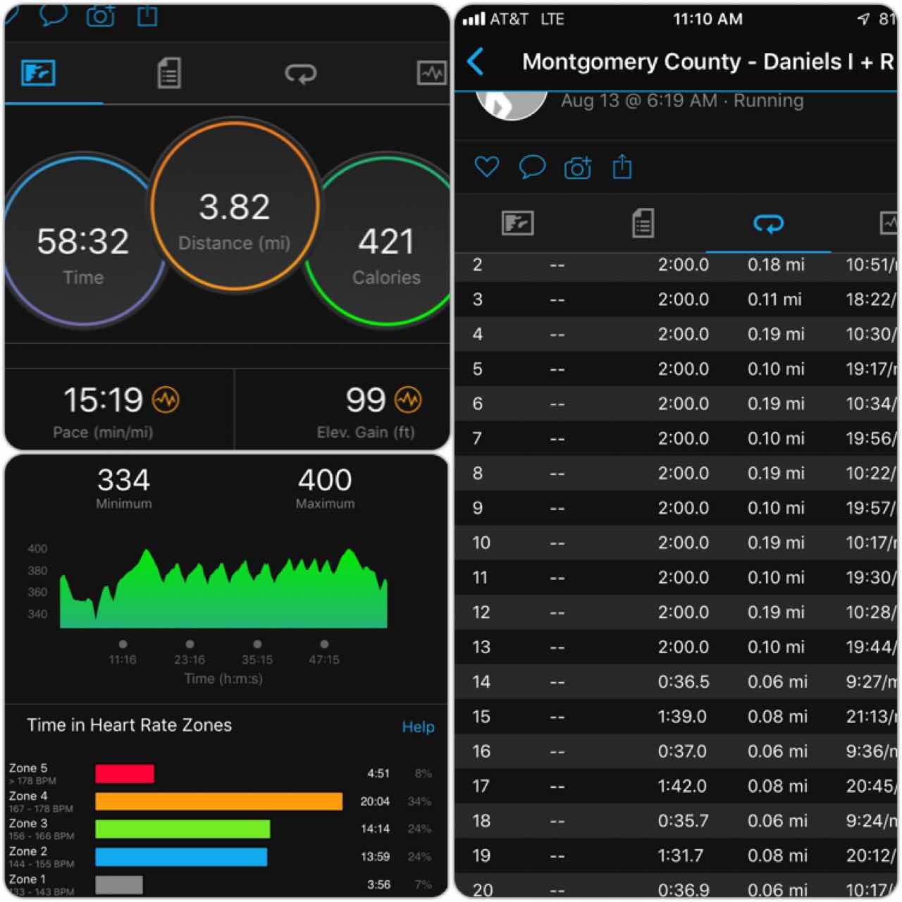 Thursday - 4 easy miles (ended up being 3.83 miles since I ran out of time)