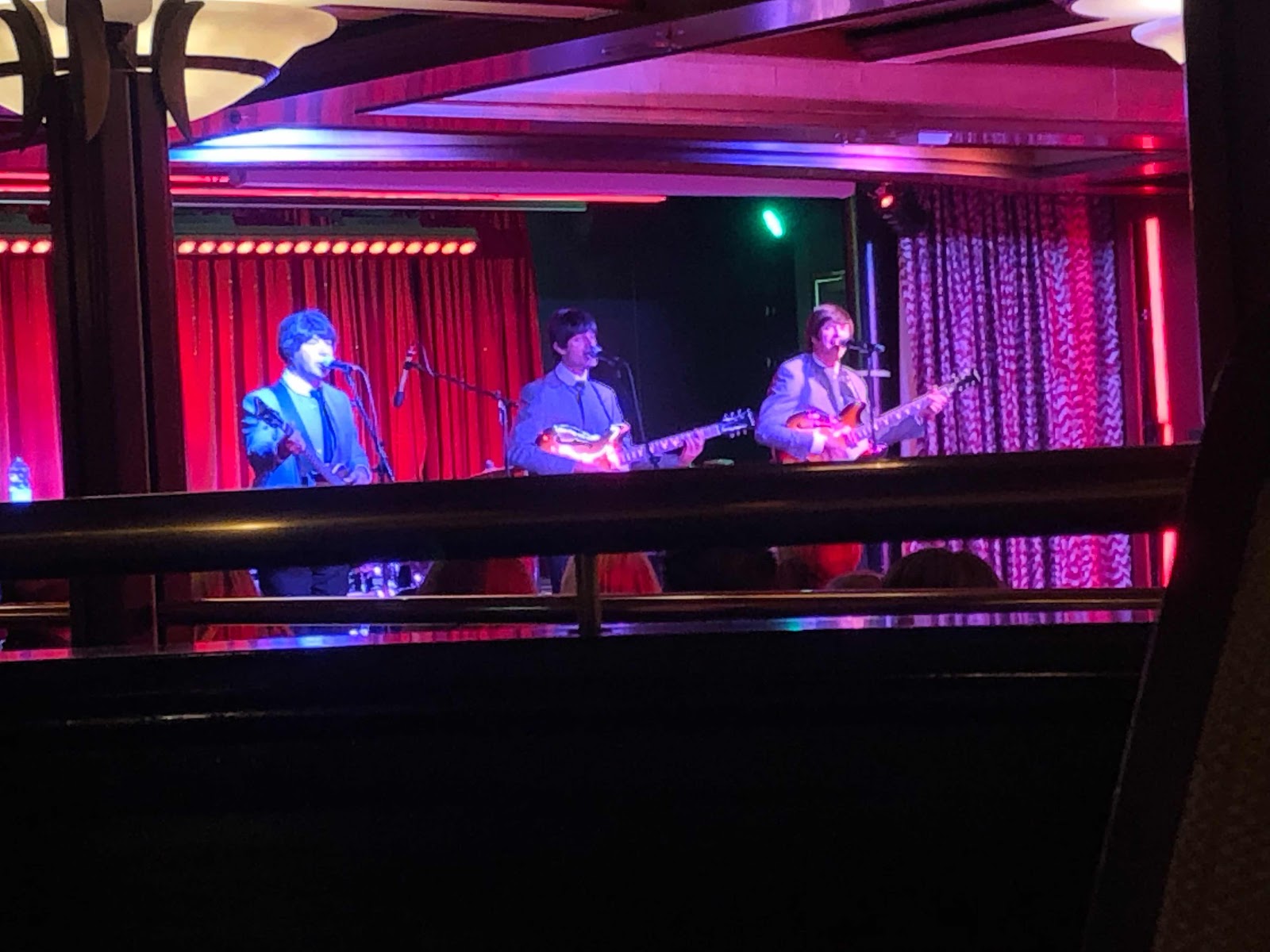 The next day was the last sea day and our last day on the ship. We got up early to grab some seats by the pool. We were early enough that it was fairly empty and I was even able to swim some laps before it got crowded. We had lunch booked at the steakhouse (the fancy restaurants are cheaper at lunch time) and they made my a yummy pasta dish. They actually made me TWO pasta dishes because they weren't sure which one I would like the best? It was obviously too much food but it was delicious. We skipped dinner in the main dining room since we were still not too hungry at that point and just went to the buffet to grab some small snacks. There was an interesting Beatles cover band that evening too.